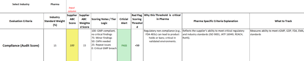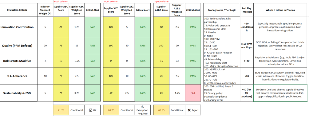 Pharma Supplier Evaluation Scorecard – Excel Template (Pre-filled)